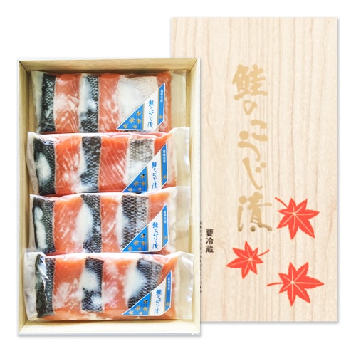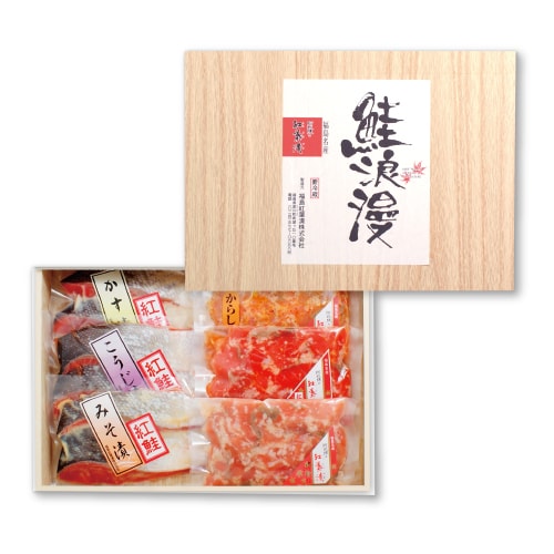 有名百貨店向けに、上質の紅鮭を使った「紅葉漬とこうじ漬」の詰め合わせです。